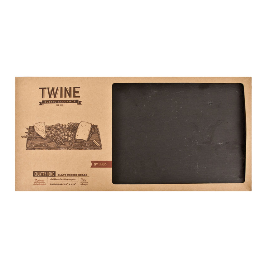 Rustic, elegant, and a staple for any kitchen, the Country Home Slate Board is perfect for your next wine and cheese party! The board features natural edges and velvet backing to protect counter and table tops. Each board comes with 2 pieces of food-safe soapstone chalk.